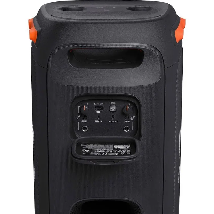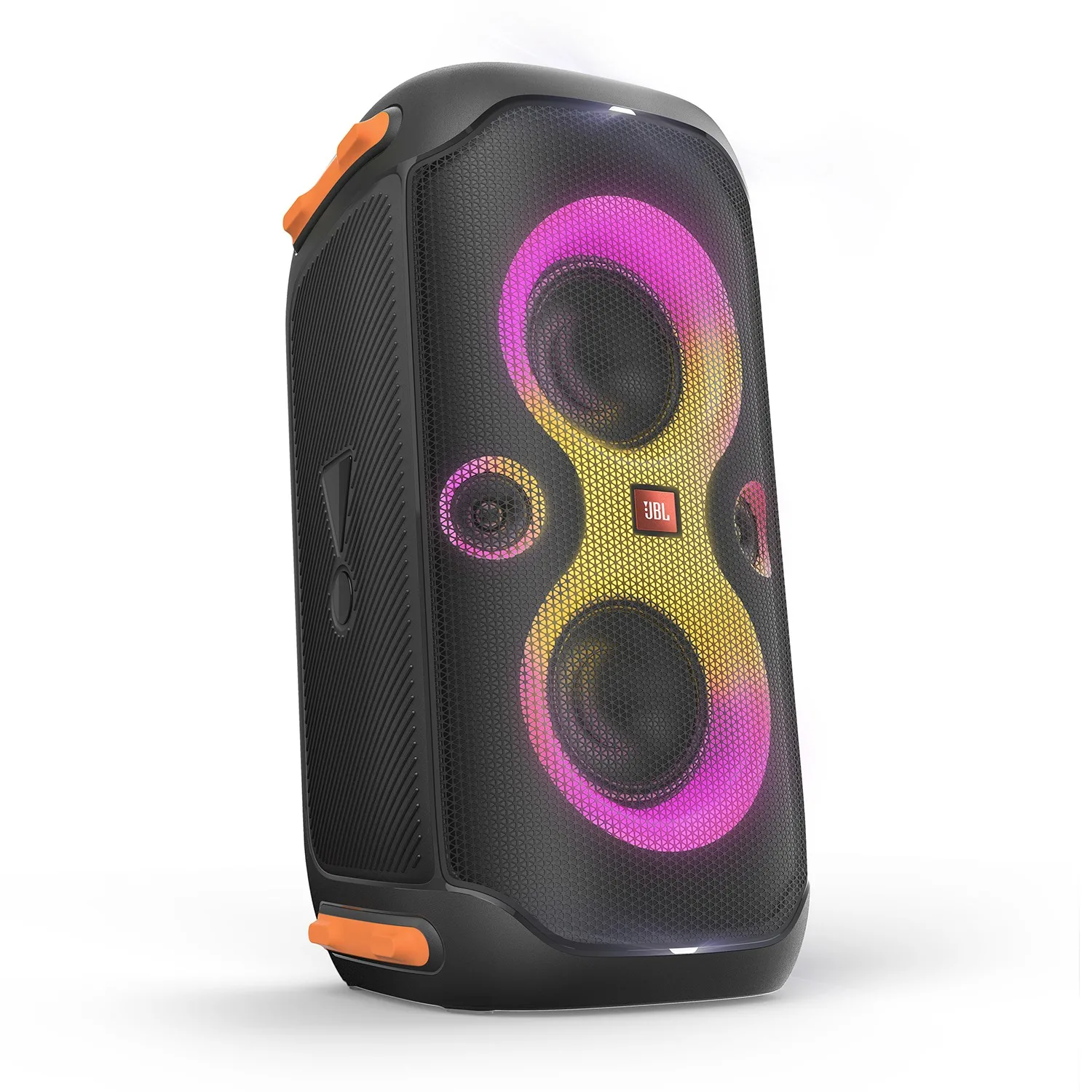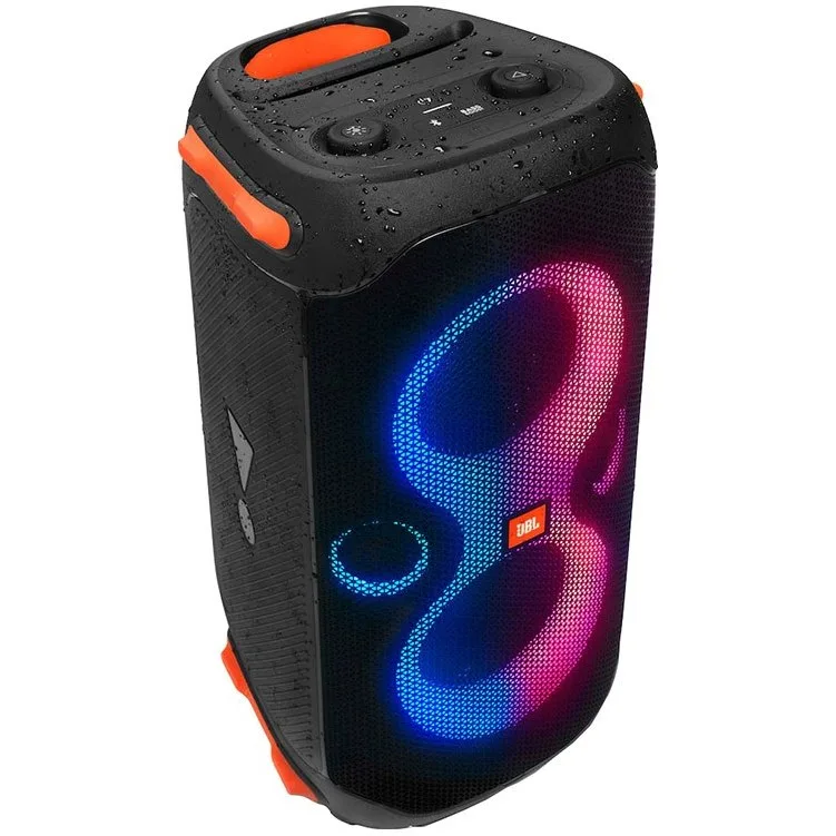با توان خروجی 160 وات، این اسپیکر صدایی رسا، شفاف و با بیس عمیق ارائه میدهد که به راحتی میتواند فضای یک مهمانی بزرگ را پوشش دهد. نورپردازی RGB هماهنگ با موسیقی، فضایی پرانرژی و جذاب ایجاد میکند و مهمانی شما را به یک تجربه بصری فراموشنشدنی تبدیل میکند. طراحی چمدانی با دستگیره و چرخ، حمل و نقل این اسپیکر را آسان کرده است. با استاندارد IPX4، این اسپیکر در برابر پاشش آب مقاوم است و میتوانید بدون نگرانی از آن در محیطهای مرطوب استفاده کنید. این اسپیکر از طریق بلوتوث، USB و ورودی AUX به دستگاههای مختلف متصل میشود. با استفاده از قابلیت PartyBoost، میتوانید دو اسپیکر PartyBox 110 را به یکدیگر متصل کرده و صدای استریو قدرتمندتری داشته باشید. با یک بار شارژ، میتوانید تا 12 ساعت از این اسپیکر استفاده کنید.