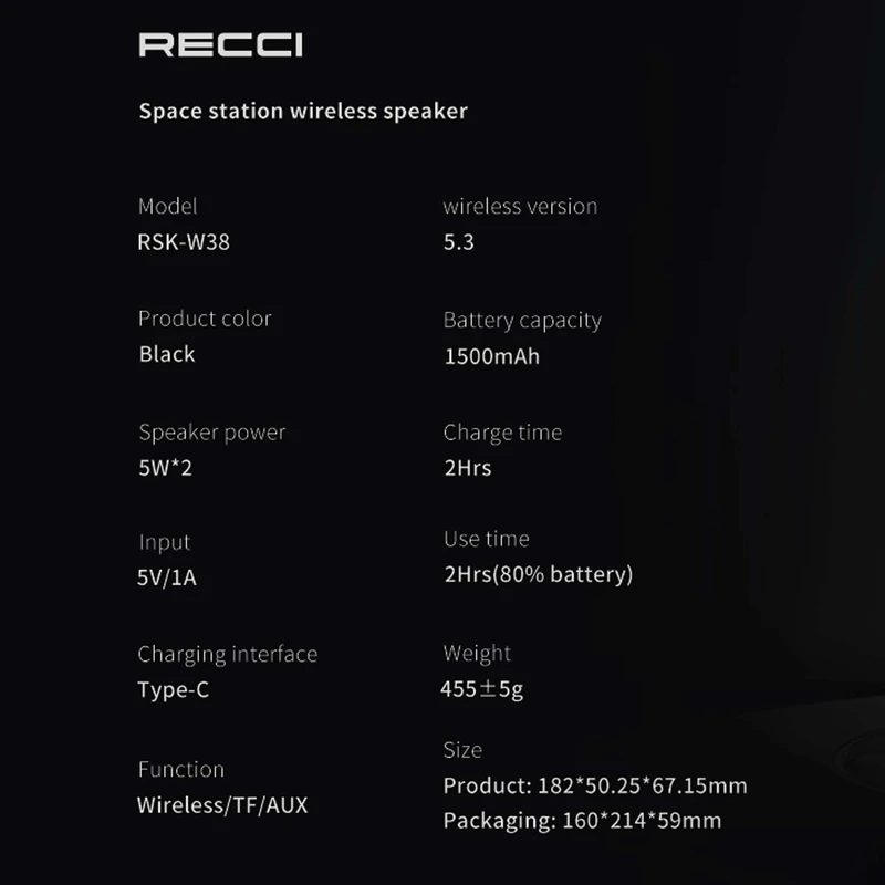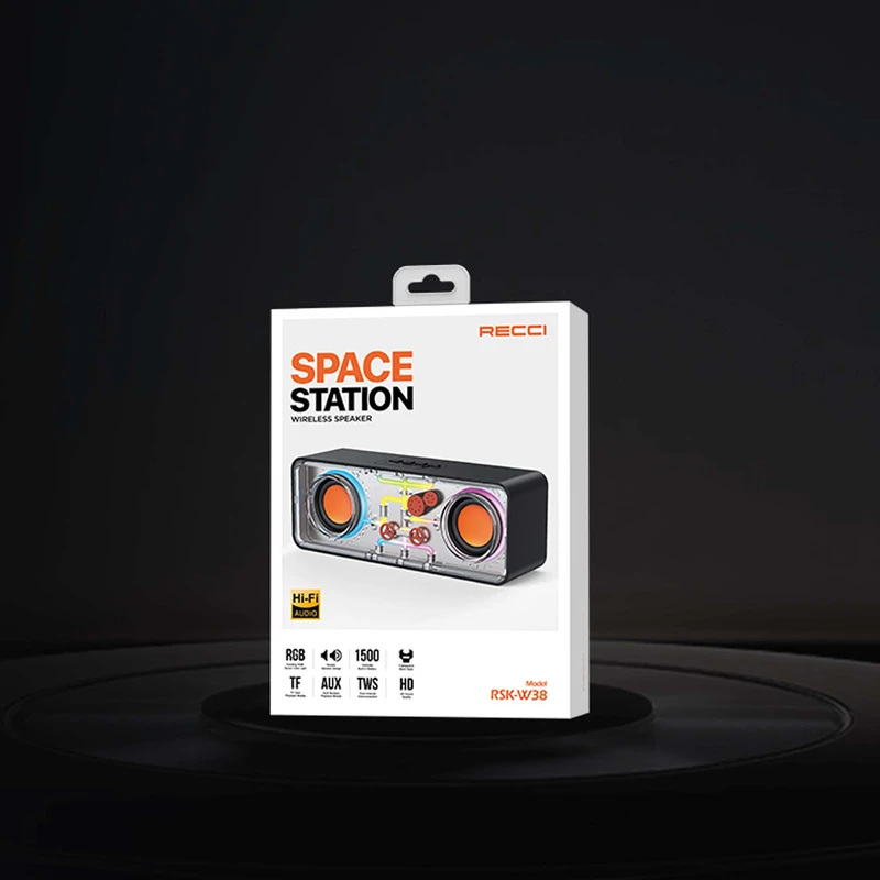 در ادامه، اسپیکر بلوتوثی RECCI مدل RSK‑W38 با جلوه نوری هفت رنگ RGB، تجربهای تماشایی برای کاربران بههمراه دارد؛ نورها در هماهنگی با ریتم موسیقی حرکت میکنند .