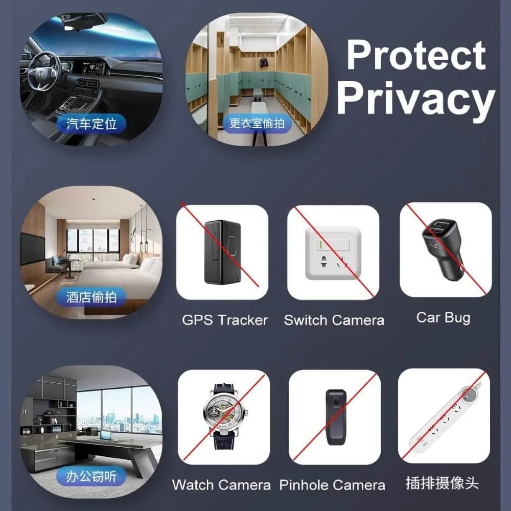دوربین های مخفی، اشکالات، دستگاه های شنود، ردیاب های GPS و موارد دیگر را شناسایی می کند.