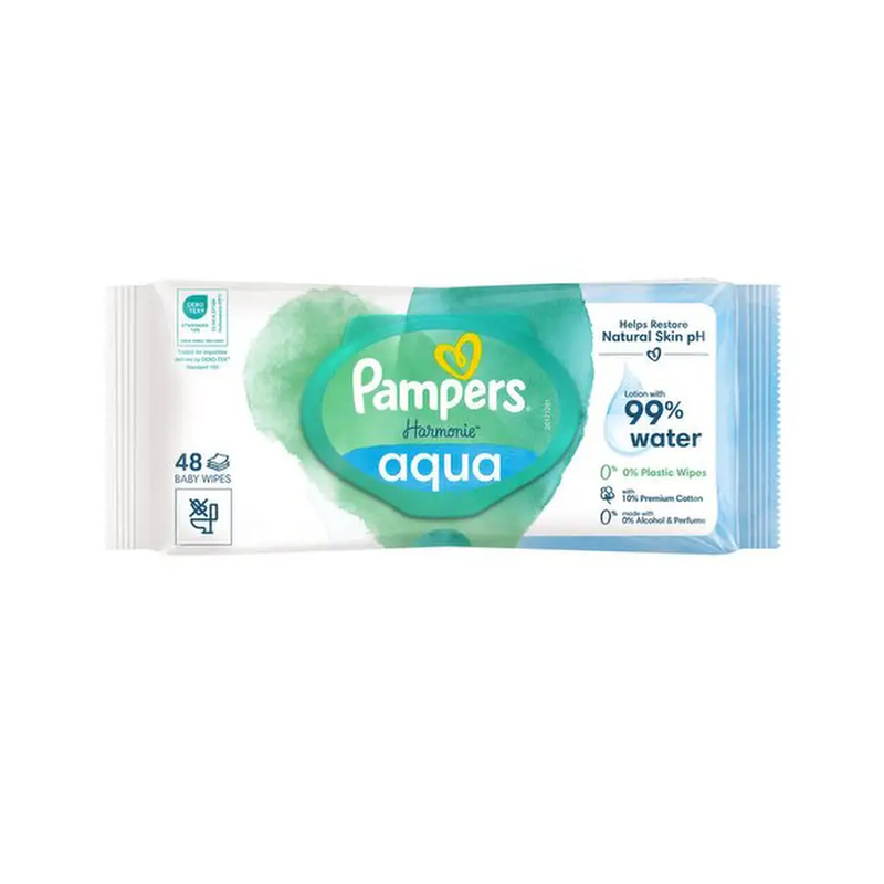 دستمال مرطوب آکوا Pampers انتخابی ایده‌ آل برای مراقبت روزانه از پوست حساس نوزاد است. این دستمال‌ها با 99% آب خالص و بدون الکل، عطر و مواد شیمیایی مضر ساخته شده‌اند تا بیشترین ملایمت را برای پوست ظریف کودک فراهم کنند. فرمولاسیون ویژه‌ی آن با حفظ رطوبت طبیعی پوست، از خشکی و تحریک جلوگیری می‌کند. بافت نرم و لطیف دستمال، تمیزکنندگی ملایم و کامل را تضمین می‌کند و برای استفاده روزانه حتی از روز اول تولد مناسب است.