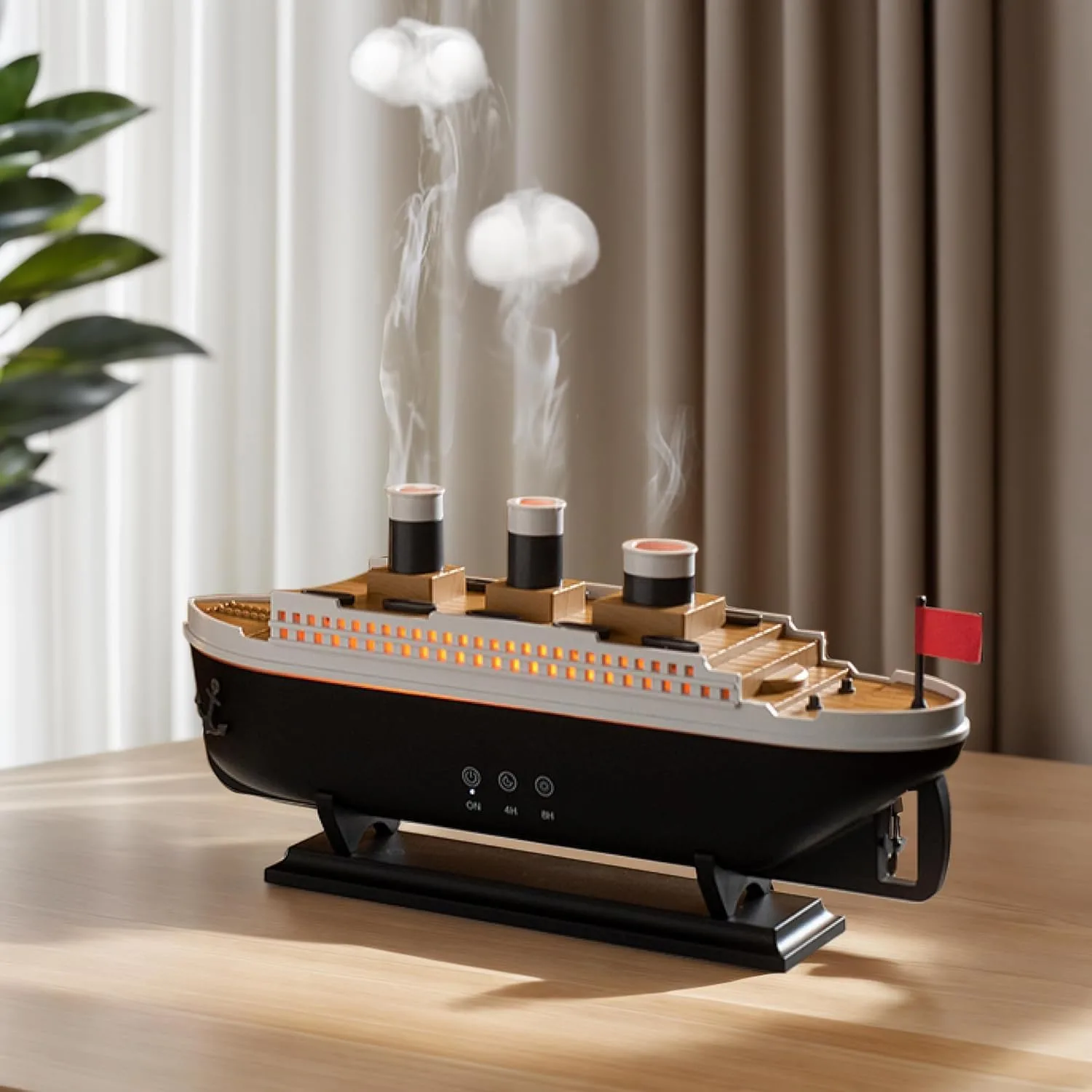 این دستگاه با فناوری اولتراسونیک، آب را به ذرات بسیار ریز بخار تبدیل می‌کند و بدون صدا، رطوبت را به‌آرامی در فضای اتاق پخش می‌کند. ظرفیت ۲۵۰ میلی‌لیتری آن برای استفاده روزانه در منزل یا محل کار مناسب است. طراحی آن به شکل کشتی تایتانیک، زیبایی چشمگیری به فضای داخلی شما می‌بخشد.