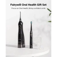 با ست مسواک برقی و واتر فلاسر FAIRYWILL مدل 507+5020E، تجربهای حرفهای از مراقبت دهان و دندان را تجربه کنید. این مجموعه شامل مسواک برقی با تکنولوژی سونیک و واتر فلاسر (نخ دندان آبی) با فشار پالسی است که به طور کامل نیازهای بهداشتی شما را برطرف میکند.
