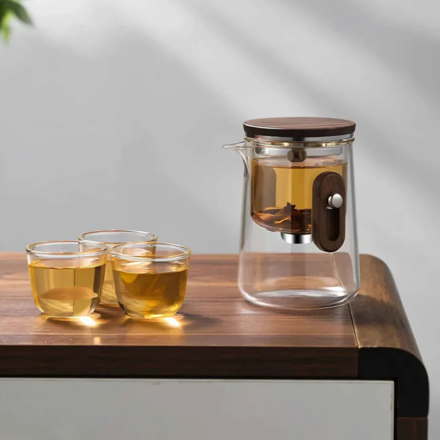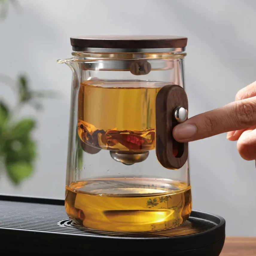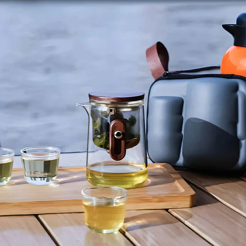 این قوری شیشه ای جمع و جور، چه در جاده باشید، چه در هوا یا در زیر ستارگان کمپ بزنید، هر جا که می روید، راحتی یک چای کاملا دم شده را به ارمغان می آورد. سیستم فیلتراسیون انقلابی آن فرآیند یکپارچه دم کردن را تضمین می کند، در حالی که کیف مسافرتی بادوام لوازم ضروری چای شما را ایمن نگه می دارد. استراحت کنید، مزه مزه کنید و از تجملات کوچک لذت ببرید – مهم نیست ماجراجویی‌هایتان شما را به کجا می‌برد.