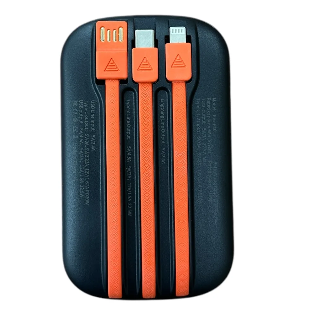 بدنه پاوربانک REX-P10 از پلاستیک مقاوم ABS ساخته شده و وزن کم آن، حمل روزانهاش را بسیار ساده میسازد. ابعاد جمعوجور این محصول، بهراحتی در کیف یا جیب شما جا میگیرد و برای استفاده در محیط کار، سفر یا فعالیتهای روزانه بسیار مناسب است.