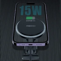 RECCI RHO-C35 از شارژ بی‌سیم سریع 15 واتی پشتیبانی می‌کند که گوشی شما را با حداکثر سرعت و بدون نیاز به کابل شارژ می‌نماید. بدنه آن از ترکیب پلی‌کربنات، ABS و اکریلیک ساخته شده که دوام بالا و مقاومت در برابر لرزش و خط و خش را تضمین می‌کند. این پایه برای نصب در دریچه کولر خودرو طراحی شده و به لطف پایداری بالا، حتی در جاده‌های ناهموار نیز عملکرد مطمئنی دارد.