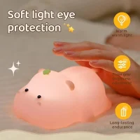 بدنه این چراغ خواب از جنس سیلیکون نرم و با کیفیته که حس خوبی به شما میده و از شکستن و آسیب دیدن اون جلوگیری میکنه. نور این چراغ خواب خیلی ملایمه و به راحتی میتونید باهاش بخوابید. این نور به آرامش و ریلکسیشن شما کمک میکنه. طراحی این چراغ خواب خیلی جذابه و به راحتی با هر دکوراسیونی ست میشه. بسته به مدل، این چراغ خواب ممکنه قابلیت تنظیم نور رو هم داشته باشه که شما میتونید نور اون رو به دلخواه خودتون تنظیم کنید. جنس سیلیکونی این چراغ خواب بیضرر هست و هیچ گونه خطری برای کودکان نداره. این چراغ خواب هم برای اتاق کودک و هم برای اتاق بزرگسال مناسبه.