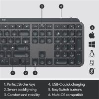 کیبورد بی سیم لاجیتک مدل Logitech MXKEYS S :کیبورد بی سیم لاجیتک مدل Logitech MXKEYS S، یک انتخاب برجسته برای کاربران حرفهای و خانگی است که به دنبال کیفیت و راحتی در استفاده از دستگاههای کامپیوتری خود هستند. این کیبورد با طراحی ارگونومیکی و کاربرپسند، تجربهای راحت و بدون خستگی را برای کاربران به ارمغان میآورد. با اتصال از طریق دانگل USB و بلوتوث، تا فاصله 10 متری اتصال بیسیم را بهخوبی پشتیبانی میکند. از ویژگیهای برجسته این مدل، انرژیگیری از طریق USB Type-C و طول عمر بالای باتری آن است که میتواند تا 10 روز با روشن بودن نور پسزمینه و تا 5 ماه بدون آن دوام بیاورد. کیبورد MX Keys S به طور خاص برای کاربرانی که مدتزمان زیادی را در مقابل کامپیوتر سپری میکنند، طراحی شده است. با کلیدهای جزیرهای و نور پسزمینه قابلتنظیم، این کیبورد هم برای کار در محیطهای کمنور و هم برای کار طولانیمدت مناسب است. همچنین، با قابلیت Easy-Switch، کاربران میتوانند بهسادگی بین سه دستگاه مختلف جابهجا شوند. طراحی ضدلغزش و پایههای مقاوم به استفاده روزمره این کیبورد را ارتقا میدهند و به حفظ ثبات آن کمک میکنند. لاجیتک با تمرکز بر کیفیت و دوام، از مواد بازیافتی در ساخت این کیبورد استفاده کرده است و این محصول دارای گواهی کربن خنثی است. باتوجهبه امکانات و ویژگیهای این کیبورد، MX Keys انتخابی ایدهآل برای کسانی است که به دنبال محصولی با طراحی مدرن و عملکرد بالا هستند.کیبورد لاجیتک مدل MX Keys S، یکی از بهترین گزینهها برای کاربرانی است که به دنبال تجربهای حرفهای و راحت در زمینه تایپ هستند. با طراحی مدرن و ویژگیهای پیشرفته، این کیبورد توانسته است جایگاه ویژهای در بازار تجهیزات جانبی کامپیوتر پیدا کند. در این نقد و بررسی، به بررسی جامع این کیبورد خواهیم پرداخت و نقاط قوت و ضعف آن را به طور کامل تحلیل خواهیم کرد.کیبورد لاجیتک MX Keys با طراحی ارگونومیک خود و ابعاد مناسب که فضای کافی برای تایپ راحت و بدون خستگی فراهم میآورد توجه بسیاری از کاربران را جلب کرده است. ابعاد این کیبورد ۴۳۳.۸۵×۱۳۱.۵۵×۲۶.۱۰میلیمتر و وزن آن ۸۱۰ گرم است که این وزن نسبتاً سنگین به پایداری بیشتر کیبورد روی میز کمک و از لغزش آن جلوگیری میکند. یکی از ویژگیهای بارز طراحی این کیبورد، کلیدهای جزیرهای آن است. این طراحی نهتنها زیبایی بصری کیبورد را افزایش داده، بلکه به تایپ سریع و دقیقتر کمک میکند. کلیدهای ممبران این کیبورد به نرمی و بیصدا عمل میکنند که برای محیطهای اداری و خانگی که به سکوت اهمیت میدهند، بسیار مناسب است.علاوه بر این، نورپردازی پسزمینه کلیدها که با حسگرهای نزدیکی به بدن و نور محیط تنظیم میشود، بهویژه در شرایط کمنور مفید است و به کاهش فشار بر روی چشمها کمک میکند. پایههای ضدلغزش و طراحی ظریف این کیبورد، از حرکت آن روی میز جلوگیری کرده و باعث افزایش راحتی هنگام تایپ میشود. همچنین، این کیبورد از جنس فلز باکیفیت بالا ساخته شده که به دوام و استحکام آن افزوده است. عملکرد کیبورد MX Keys S بهطورکلی بسیار رضایتبخش است. کلیدهای ممبران این کیبورد، با طراحی و مکانیزم خاص خود، تجربه تایپ بیصدا و راحتی را ارائه میدهند. اتصال بلوتوث تا فاصله ۱۰ متر را بهخوبی پشتیبانی میکند که این ویژگی برای کاربرانی که به فضای کاری گستردهتری نیاز دارند، بسیار مفید است. این کیبورد با اتصال دوگانه از طریق دانگل USB و بلوتوث، به کاربران این امکان را میدهد که با ویژگی Easy-Switch بهسادگی بین سه دستگاه مختلف جابهجا شوند و بدون نیاز به قطع و وصل کردن کیبورد، از آن در دستگاههای مختلف استفاده کنند. کیبورد MX Keys S با پشتیبانی از نرمافزار Logi Options+ به کاربران این امکان را میدهد که تنظیمات و سفارشیسازیهای مختلفی را روی کیبورد خود اعمال کنند. این نرمافزار بهویژه برای کاربران حرفهای که نیاز به تنظیمات خاص و بهینهسازی عملکرد کیبورد خود دارند، بسیار مفید است. بااینحال، برای بهرهبرداری از تمامی قابلیتها و تنظیمات پیشرفته، نصب این نرمافزار ضروری