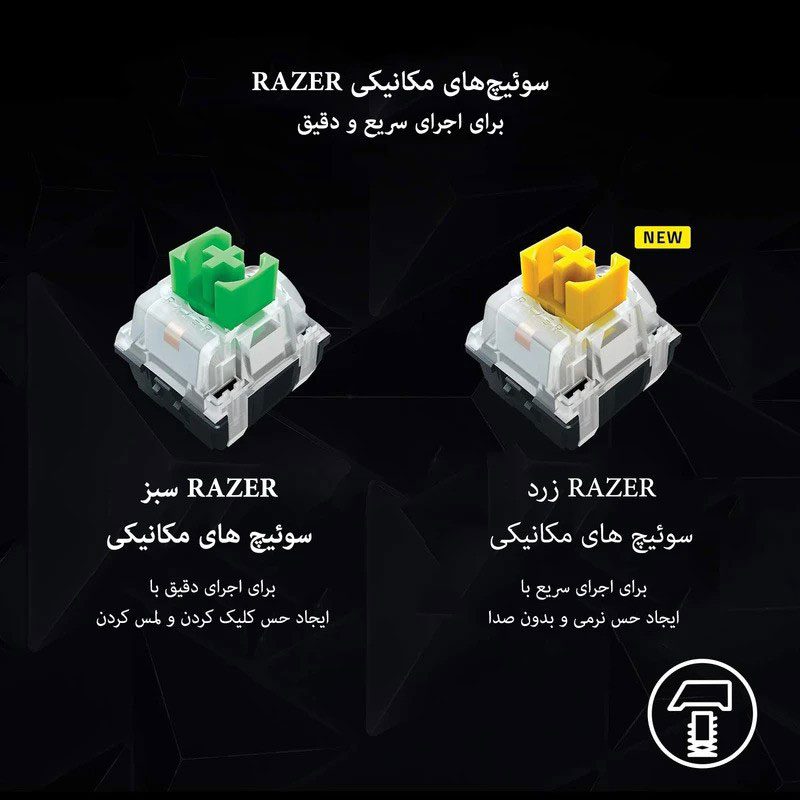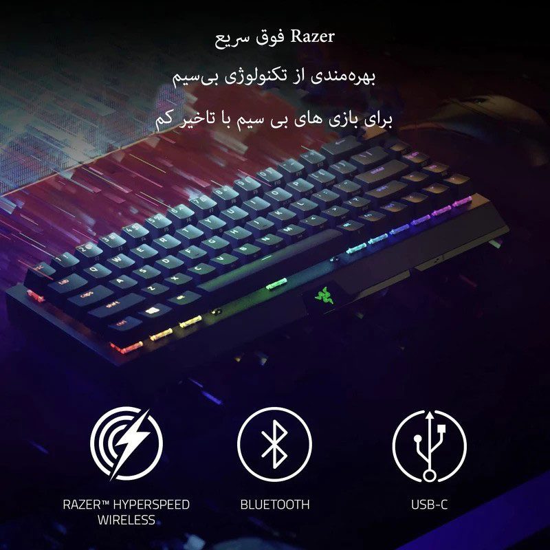 کیبورد مخصوص بازی ریزر مدل Razer BlackWidow V3 Mini HyperSpeed :کیبوردهای گیمینگ نقش بسیار مهمی در تجربه بازی‌های ویدیویی ایفا می‌کنند. یکی از کیبوردهای محبوب و پرطرفدار در این حوزه، Razer BlackWidow V3 Mini HyperSpeed است که توسط شرکت معتبر Razer تولید شده است. این کیبورد ترکیبی از کیفیت ساخت بالا، طراحی جمع‌وجور و فناوری بی‌سیم با تأخیر بسیار پایین را ارائه می‌دهد که آن را برای گیمرهای حرفه‌ای و حتی کاربران عادی بسیار جذاب می‌کند.کیبورد Razer BlackWidow V3 Mini HyperSpeed با طراحی جمع‌وجور و کلیدهای فشرده ساخته شده است. این کیبورد 65 درصدی، بدون بخش اعداد مجزا (Numpad) و با حذف کلیدهای اضافی، فضای کمتری روی میز اشغال می‌کند و امکان حرکت بیشتر دست‌ها را فراهم می‌سازد.ساختار کلی کیبورد بسیار محکم و مقاوم است و استفاده از پلاستیک با کیفیت بالا در کنار کلیدهای مکانیکی باعث شده که عمر دستگاه طولانی باشد و حس تایپ و بازی روان و دقیق باشد.این کیبورد از سوئیچ‌های مکانیکی Razer Green استفاده می‌کند که حس کلیک‌دار و پاسخ‌دهی سریع را برای بازی‌های اکشن و تایپ فراهم می‌کند. سوئیچ‌های Razer Green با عمر بالا (حدود 80 میلیون کلیک) و سرعت عمل بالا، بازخورد لمسی و صدای جذابی دارند که بسیاری از گیمرها آن را ترجیح می‌دهند.علاوه بر این، سیستم اتصال بی‌سیم HyperSpeed 2.4 گیگاهرتزی ریزر، تأخیر بسیار پایینی دارد و با بلوتوث هم سازگار است که این امکان را می‌دهد تا کیبورد به راحتی با لپ‌تاپ، کنسول یا موبایل نیز جفت شود.کیبورد از نرم‌افزار اختصاصی Razer Synapse پشتیبانی می‌کند که امکان شخصی‌سازی کامل نورپردازی RGB، تنظیم کلیدهای ماکرو، تغییر پروفایل‌های کیبورد و تنظیمات عملکرد را فراهم می‌کند. این نرم‌افزار به صورت رایگان قابل دانلود است و محیطی کاربرپسند دارد.کیبورد Razer BlackWidow V3 Mini HyperSpeed یک انتخاب فوق‌العاده برای گیمرهایی است که به دنبال یک کیبورد مکانیکی بی‌سیم با طراحی جمع‌وجور، عملکرد بالا و ویژگی‌های شخصی‌سازی پیشرفته هستند. با توجه به کیفیت ساخت، عمر کلیدها و اتصال بی‌سیم کم‌تاخیر، این کیبورد یکی از بهترین‌های بازار در رده خودش محسوب می‌شود.