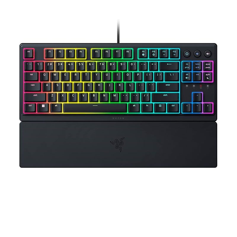 کیبورد مخصوص بازی ریزر مدل Razer ORNATA V3 :کیبورد Razer Ornata V3 یک مدل نیمهمکانیکال از برند معتبر Razer است که برای گیمرها و کاربران حرفهای طراحی شده است. این کیبورد با ویژگیهای خاص خود، تجربهای متفاوت از تایپ و بازی را ارائه میدهد. در ادامه، مشخصات و ویژگیهای این کیبورد را بررسی میکنیم:طراحی Low Profile: کلیدهای نازکتر و سوئیچهای کوتاهتر باعث راحتی بیشتر در تایپ و بازی میشوند.نورپردازی شخصیسازیشده: با استفاده از Razer Chroma، میتوانید نورپردازی کیبورد را مطابق با سلیقه خود تنظیم کنید.پد ارگونومیک: برای راحتی بیشتر در استفادههای طولانیمدت، پد نرم و راحتی در قسمت زیرین کیبورد قرار دارد.مقاومت بالا: ساختار مقاوم در برابر آب و گرد و غبار، عمر مفید کیبورد را افزایش میدهد.تجربه تایپ و بازی روان: سوئیچهای اختصاصی Razer باعث تجربهای نرم و سریع میشوند.قابلیت شخصیسازی بالا: با 16.8 میلیون رنگ نورپردازی و تنظیمات مختلف، میتوانید کیبورد را مطابق با سلیقه خود تنظیم کنید.طراحی ارگونومیک: پد نرم و راحتی که با طراحی Low Profile کیبورد ترکیب شده، استفاده طولانیمدت را راحتتر میکند.کیبورد Razer Ornata V3 یک انتخاب مناسب برای گیمرها و کاربران حرفهای است که به دنبال کیبوردی با طراحی ارگونومیک، نورپردازی شخصیسازیشده و تجربه تایپ روان هستند. اگر به دنبال کیبوردی با سوئیچ مکانیکال نیستید و ویژگیهای ذکر شده برایتان مهم است، این کیبورد میتواند گزینهای عالی باشد.