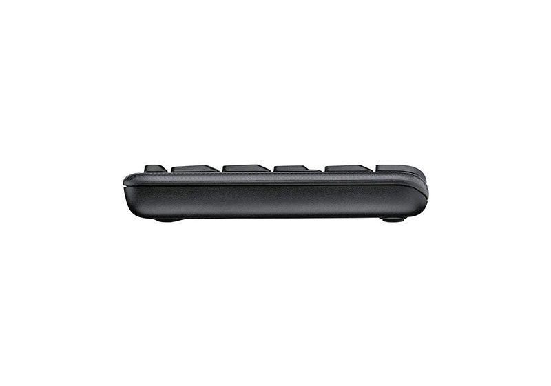 کیبورد این مجموعه طراحی جمعوجوری دارد و نسبت به کیبوردهای فولسایز کوچکتر است اما همچنان تمام کلیدهای ضروری از جمله نامپد در آن وجود دارد. کلیدها نرم هستند و سرعت تایپ روی این مدل بسیار مناسب است. از آنجایی که این کیبورد ابعاد کوچکی دارد، برای میزهای کمجا، استفادههای اداری، دانشجویی و حملونقل آسان، انتخابی ایدهآل است.