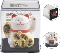 این گربه فنگشویی با پنل خورشیدی داخلی خود، در نور مستقیم یا غیرمستقیم محیط فعال میشود و دست خود را بالا و پایین میبرد. این حرکت نماد دعوت مشتری، جذب ثروت و انرژی مثبت است. همچنین بهعنوان یک آیتم دکوری، جلوهای سنتی و در عین حال دلنشین به فضا میبخشد.