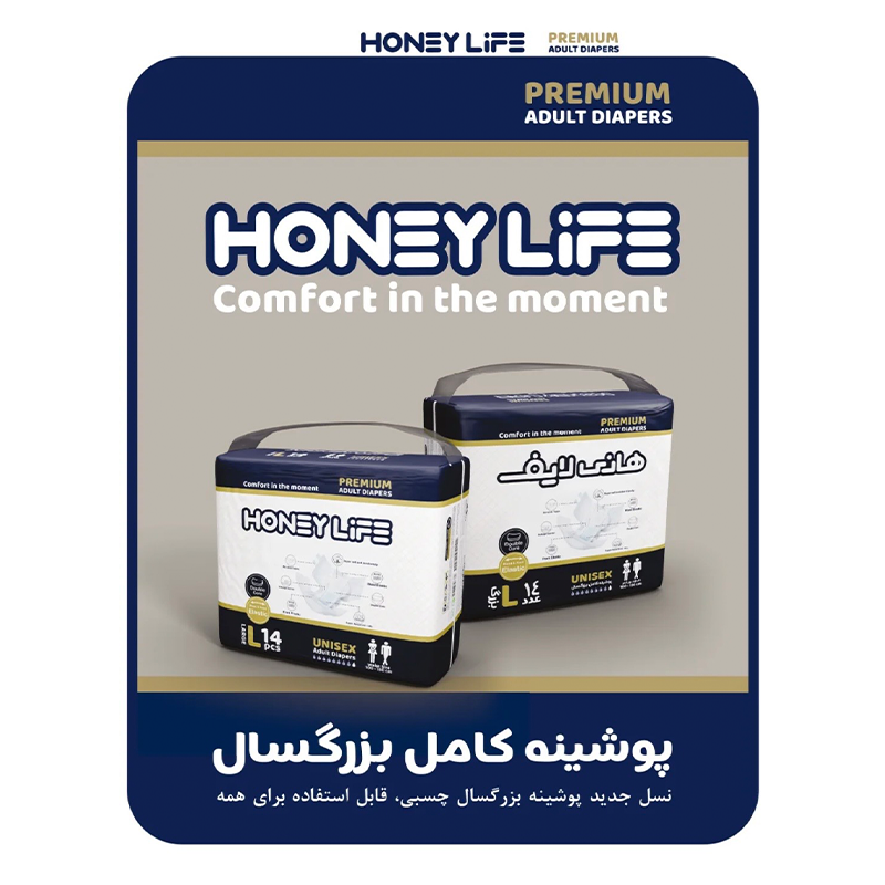 معرفی پوشینه بزرگسال چسبی هانی لایف مدل Premium سایز L بسته 14 عددی