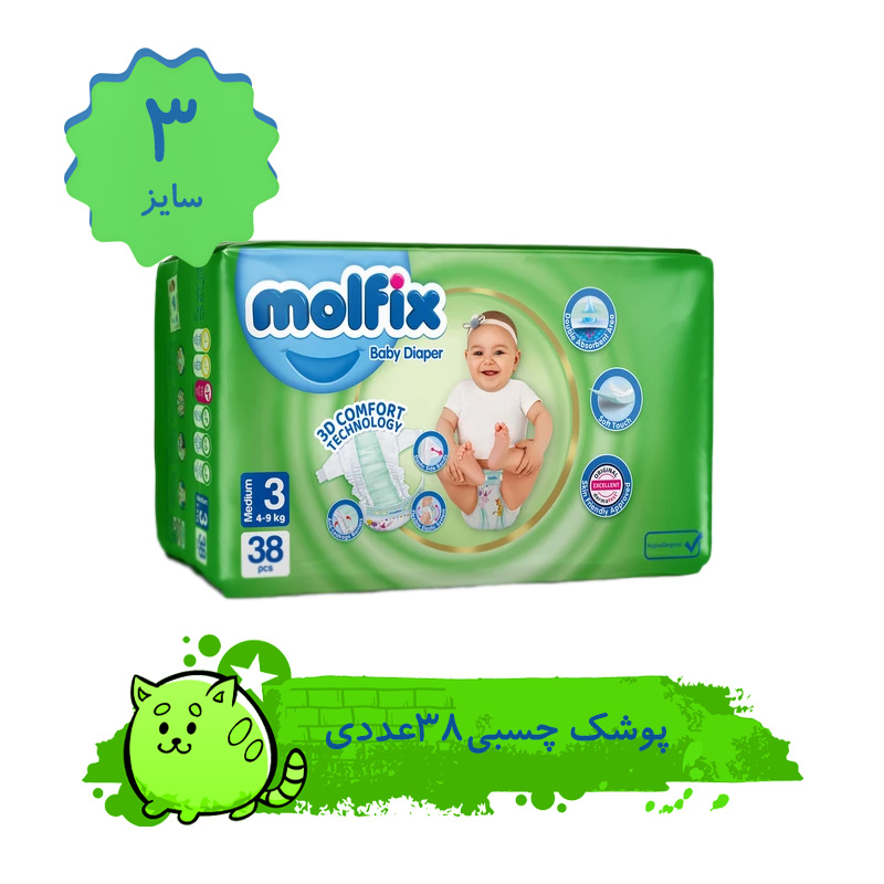 پوشک کودک مولفیکس مدل چسبی سایز 3 بسته 38 عددی
