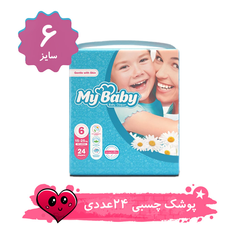 پوشک مای بیبی چسبی سایز 6 بسته 24 عددی