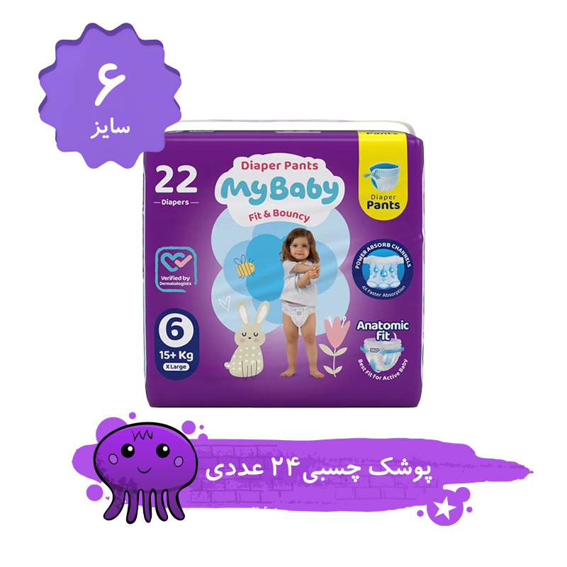 پوشک شورتی مای بیبی مدل کانال‌دار سایز 6 بسته 22 عددی